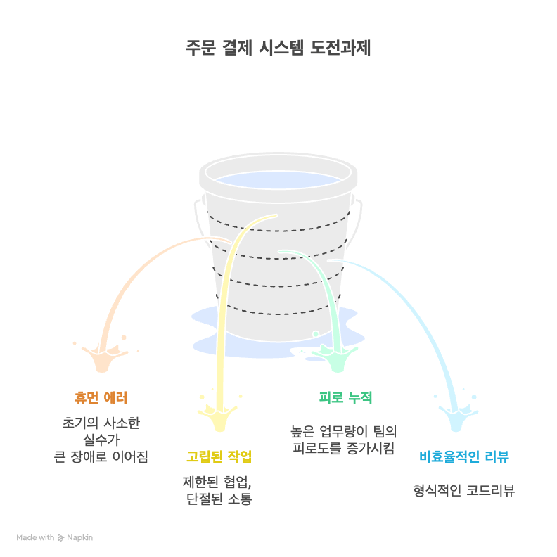 간편 결제 연동, 장바구니 로직 최적화 등 굵직한 프로젝트들을 성공적으로 완수했지만, 스쿼드 내부적으로는 '휴먼 에러'로 인한 잦은 장애와 개선되지 않는 스쿼드 문화라는 고민을 안고 있었습니다.