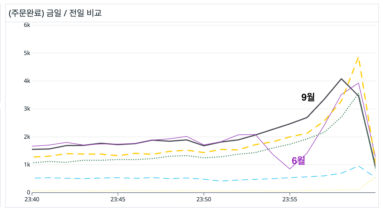 그 결과 장바구니 조회 쿼리 사용량이 54% 이상 감소하며 성능 개선 효과를 입증했습니다. 특히 9월 세일 기간에도 DB 커넥션풀 부하가 완화되어 안정적인 운영이 가능했습니다.
