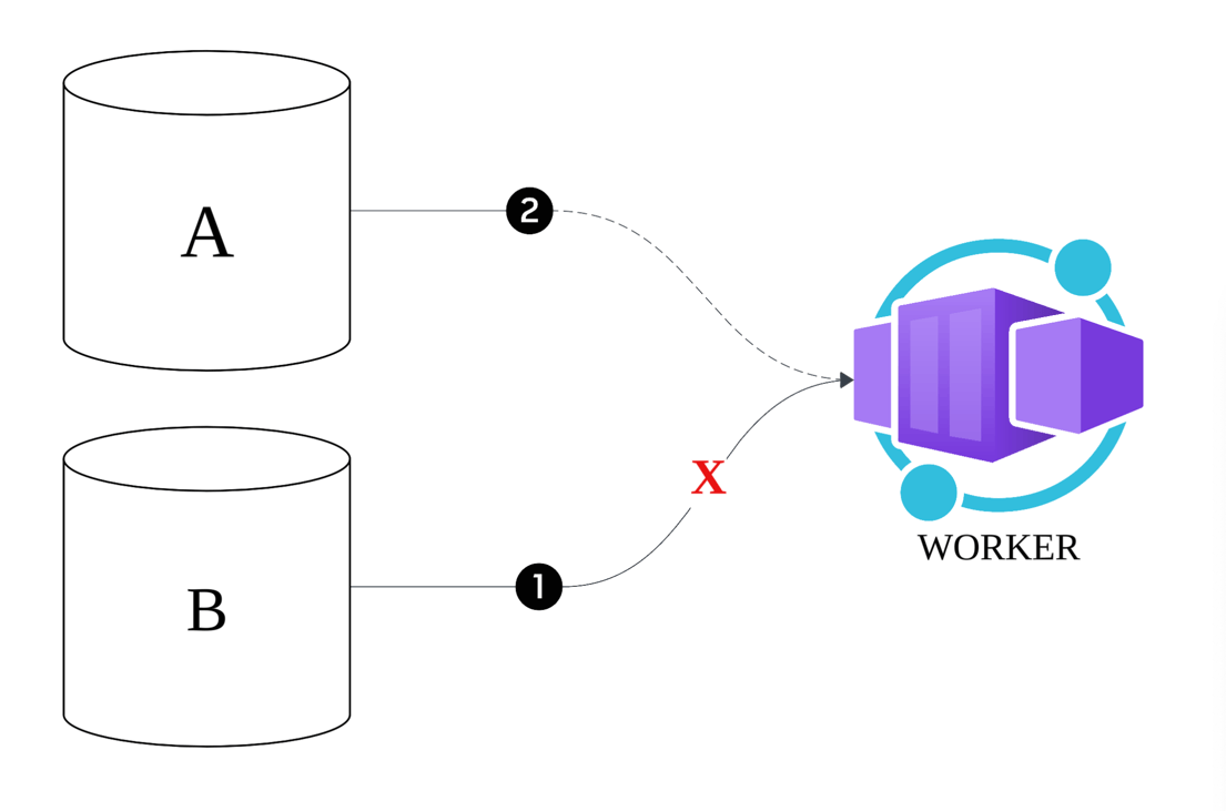 이러한 이슈로 인해 핵심 문제는 서로 연관된 두 테이블이 바라보는 토픽의 메시지가 타겟에서 원하는 순서대로 소비되지 않을 때 발생합니다.