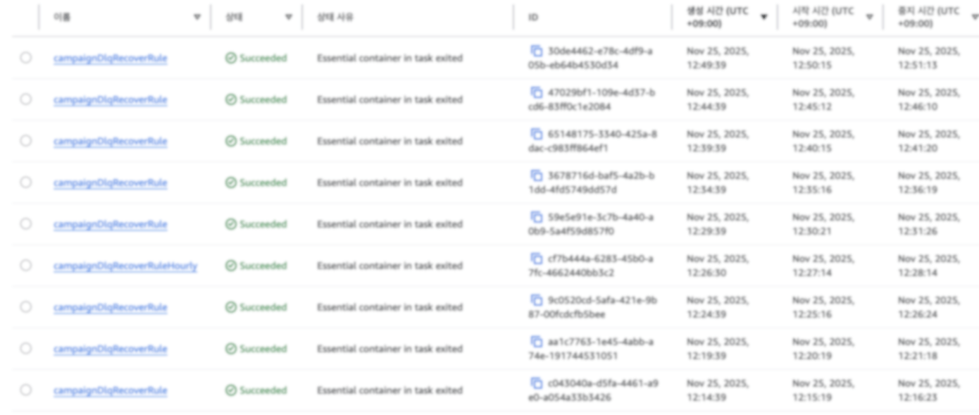 - 워커(Campaign-Worker) 담당: 약관 동의, 마케팅 정보 등 여러 테이블의 변경 사항을 받아 복잡한 조인 및 변환 로직을 수행하여 타겟 테이블에 적재합니다.