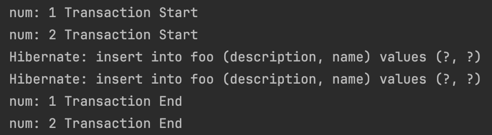 아래 코드는 병렬로 fooTransaction() 2번 호출하여 DB에 데이터를 저장하는 코드 예제입니다.