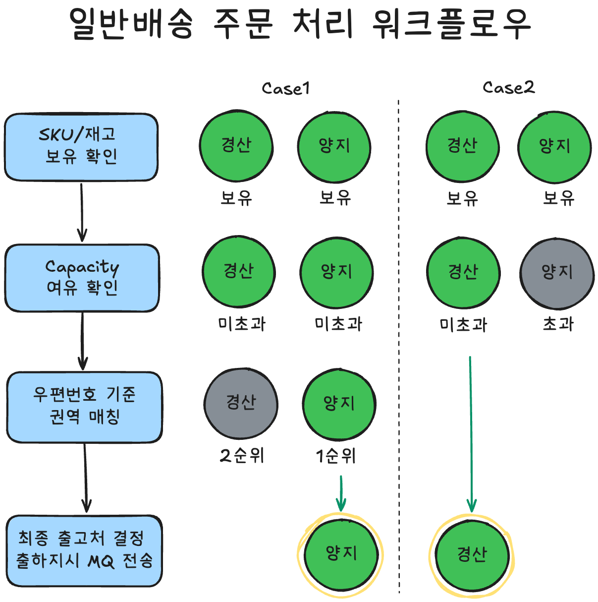기존 주문 처리 구조는 앞서 설명해 드린 대로 양지센터 중심의 단일 센터 체제를 전제로 설계되어 있었습니다.
